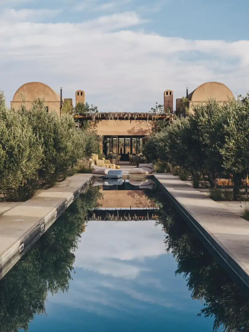 The regenerative farm grows many of the vegetables and herbs used in the kitchen. A 50-metre lap pool is lined with sundecks shaded by crochet parasols. The drought-resistant plants, butterfly-attracting lantanas and winding pathways layered with argan-nut shells, which are soft underfoot, are gentle reminders of the thought and care that have gone into the project.