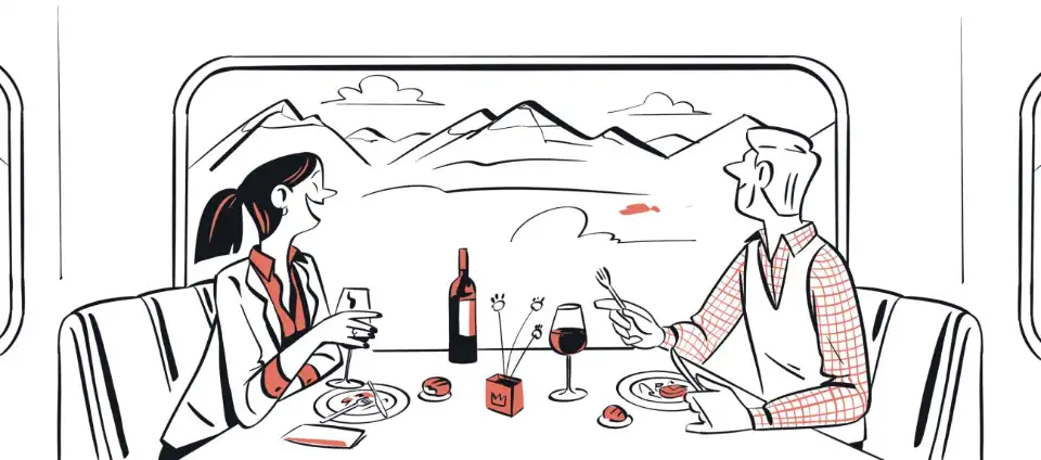 But it’s not just the food – dining car interiors are wonderfully varied. The Blå Tåget, or Blue Train, which runs between Gothenburg and Stockholm, lives up to its name with navy upholstered banquette seating and interiors reminiscent of those from the 1960s. The menu features crayfish salad and veal meatballs with mashed potato. Then there’s the panoramic dining car on the EC 8 from Zürich to Köln, which has generous windows and circular tables. Here you can order cheese platters accompanied by a delectable wine selection as the mountains roll by. Whichever the line, wherever your destination, there’s no finer way to get from A to B than with a meal and a view.