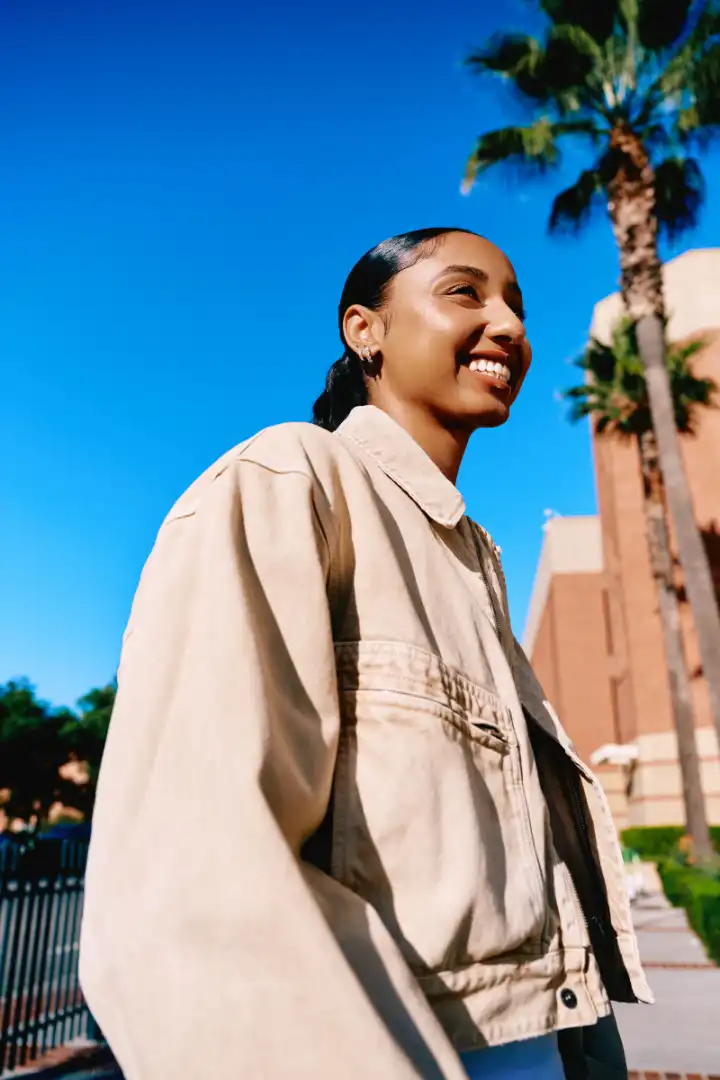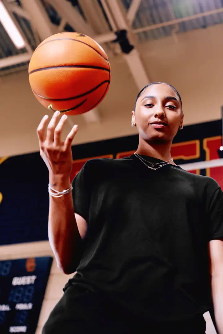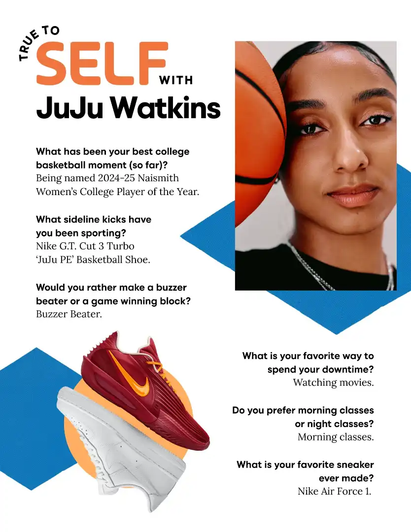 What came next was what’s been coined the “JuJu Effect:” a record-shattering start to her college career that has more than quadrupled the number of fans at Trojans home games, followed by a flurry of NIL deals including what sources have described as one of the richest shoe endorsement deals in women’s basketball with Nike. A Superbowl commercial. A massive mural in LA. A State Farm ad:“You need good juju?!”Her court look went viral, with fans scrambling for intel on her signature bun. She scored the first professional makeup brand endorsement in women’s college basketball with NYX. Caitlin Clark even passed along her personal cell in case Watkins needed tips on managing being thrust into stardom. (Watkins will likely be eligible for the WNBA draft in 2027, based on current rules, and says she’s “excited for that chapter of my life.”)