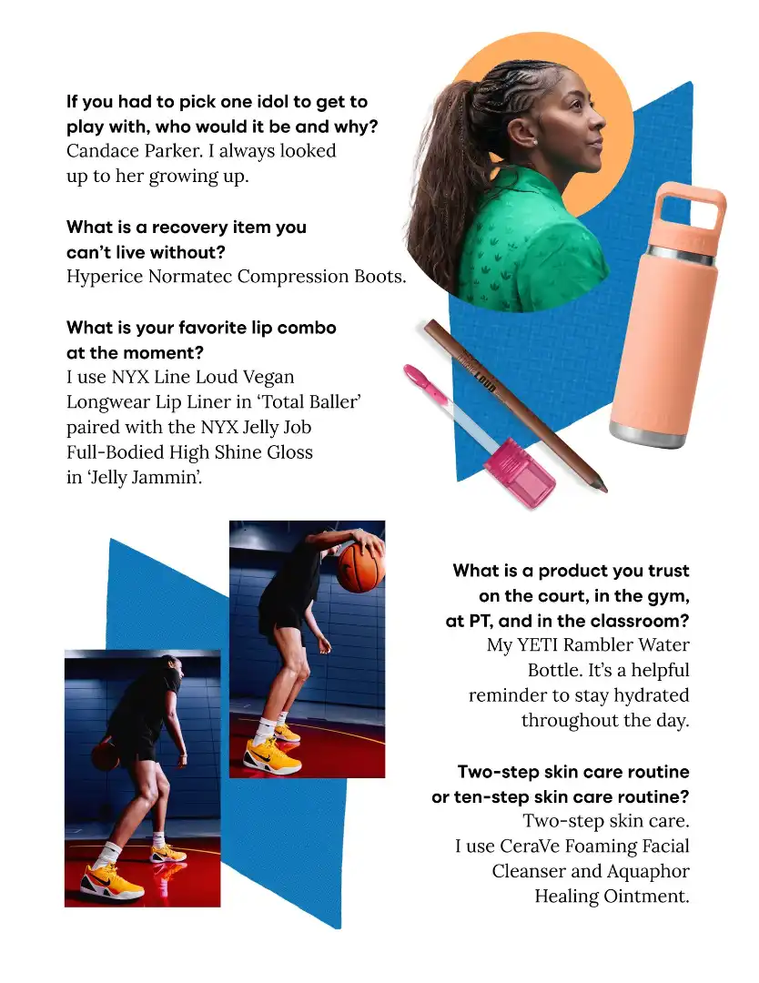 When we chat, however, Watkins is humble, quick to point out the obvious shortcoming on her goal list: She hasn’t won a championship. I ask what she’s most proud of when she looks back at the accomplishments shehasnotched, and she says she’ll give me two answers: tangible and intangible. The former “has to be Naismith,” she says, referring to the 2025 Naismith Women’s College Player of the Year award: “I am always super grateful for individual awards, but that one in particular is something I’ve dreamt of since I was a kid.” And the intangible? “The resilience I’ve gained,” she says, “as both an athlete and a person.”