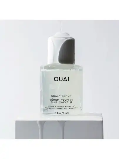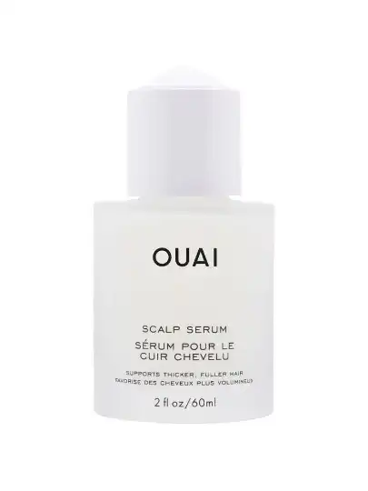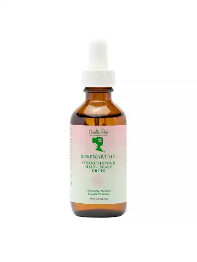 Then, I’ll massage my head for about five minutes with a little handheld scalp massager and put my strengthening oils in my hair—I have a spray bottle to get my hair wet. I use the Ouai Scalp Serum. I’ve also been using the Camille Rose Rosemary Oil Strengthening Hair + Scalp Drops and a Camille Rose leave-in conditioner. And then I go in with some kind of gel that’ll help seal it in, and throw my hair up in the bonnet.